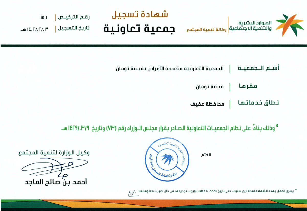 مسجلة برقم تعاوني 1111570156 وزارة الموارد والتنمية الاجتماعية – المملكة العربية السعودية